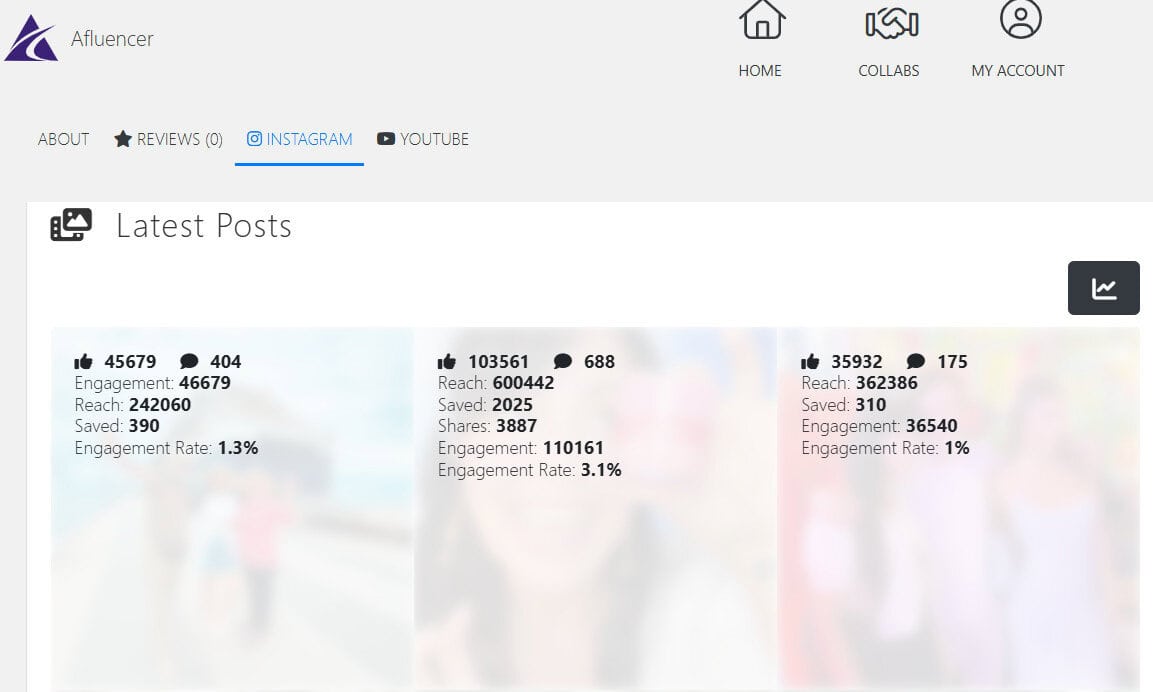 On Afluencer, you can instantly see each influencer’s recent engagement levels before you even reach out, helping you spot creators whose audiences are actively responding — not just scrolling past. Once you’ve found your match, you can post affiliate-based Collabs directly on the platform, turning every creator into a revenue partner and keeping ROI clear from the start.